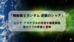 機動戦士ガンダム 逆襲のシャア 「逆襲のシャア」シャア・アズナブルの名言集・名セリフの背景と意味 映画「機動戦士ガンダム 逆襲のシャア」で総帥シャア・アズナブルが放った名言の数々は、公開から長い年月が経った今でも多くの人々の心を捉えて離しません。これほどまでに注目され続ける理由は、彼の言葉の中に人類の未来に対する深い洞察と、一人の人間と... 機動戦士ガンダム 逆襲のシャア機動戦士ガンダムシリーズ