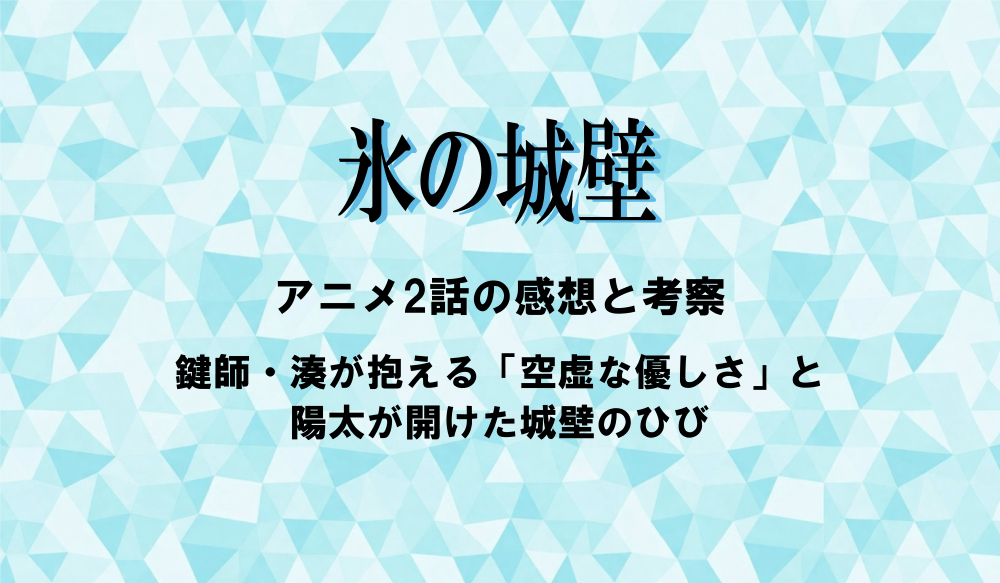 アニメ『氷の城壁』2話の感想と考察:鍵師・湊が抱える「空虚な優しさ」と、陽太が開けた城壁のひび
