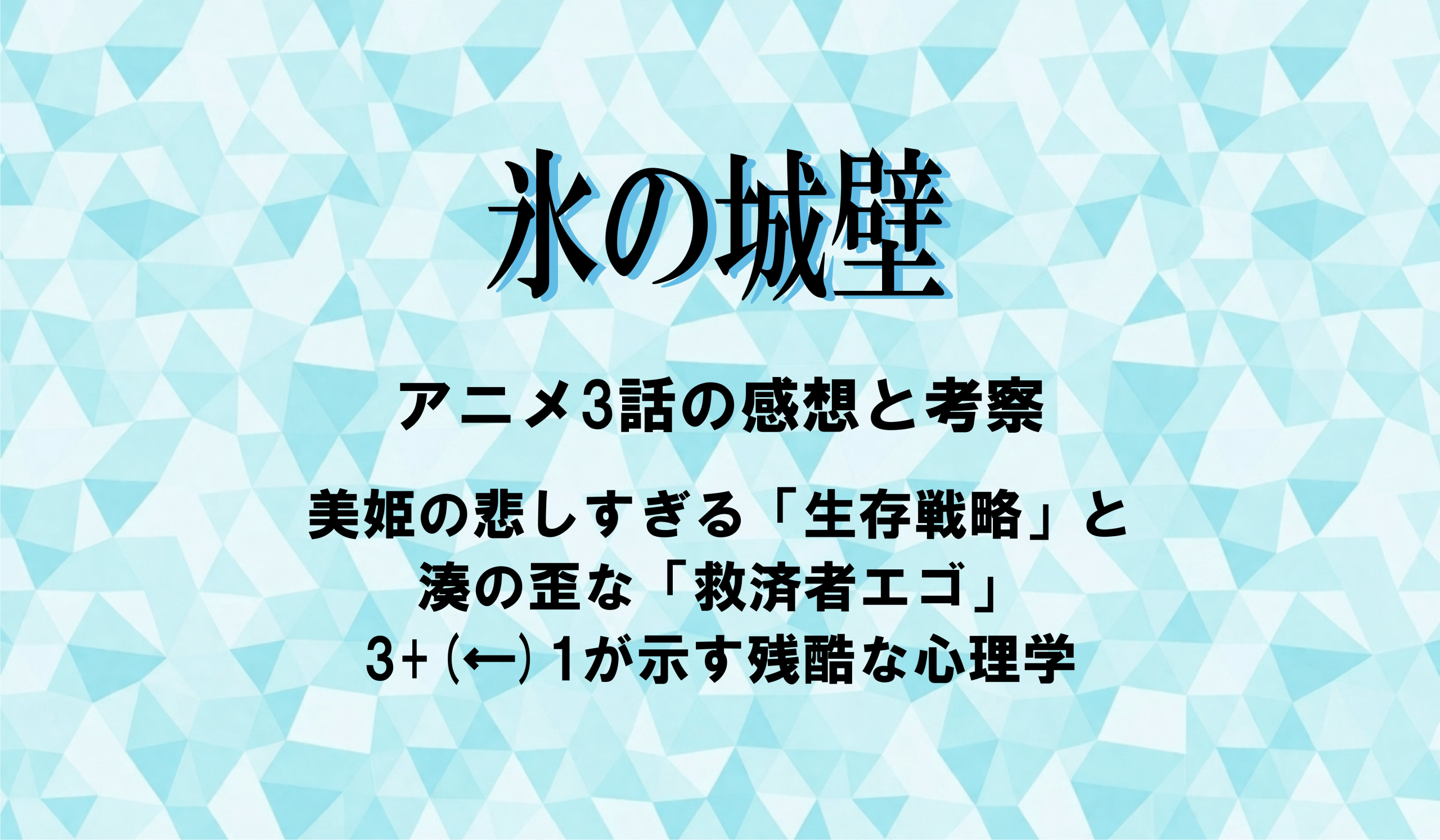 アニメ『氷の城壁』第3話「3+(←)1」を視聴して、この作品が描こうとしている「青春のままならなさ」と「人間の心の不可解さ」に、思わず背筋が凍るような、それでいて目が離せない不思議な感覚に陥っています。